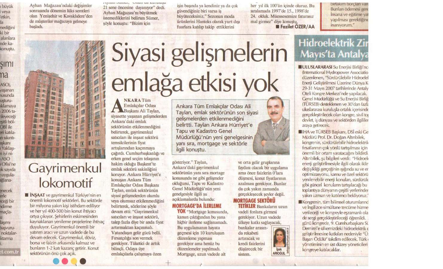 TEMFED TÜM EMLAK MÜŞAVİRLERİ FEDERASYONU,14, Mayıs, 2007, Hürriyet