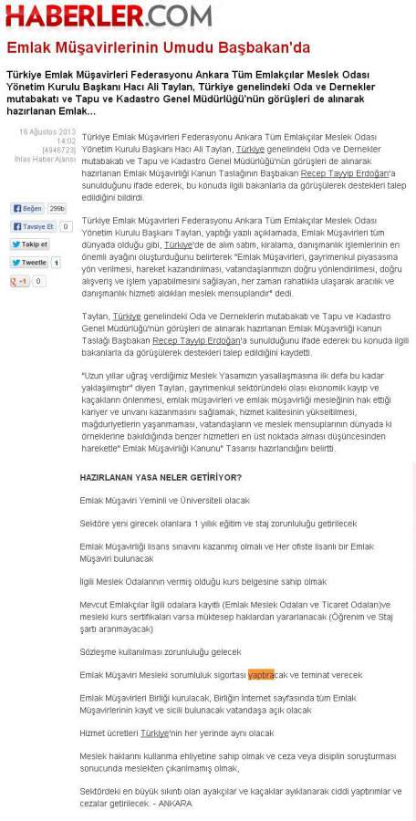 TEMFED TÜM EMLAK MÜŞAVİRLERİ FEDERASYONU,16, AĞUSTOS, 2013HABERLER, COM