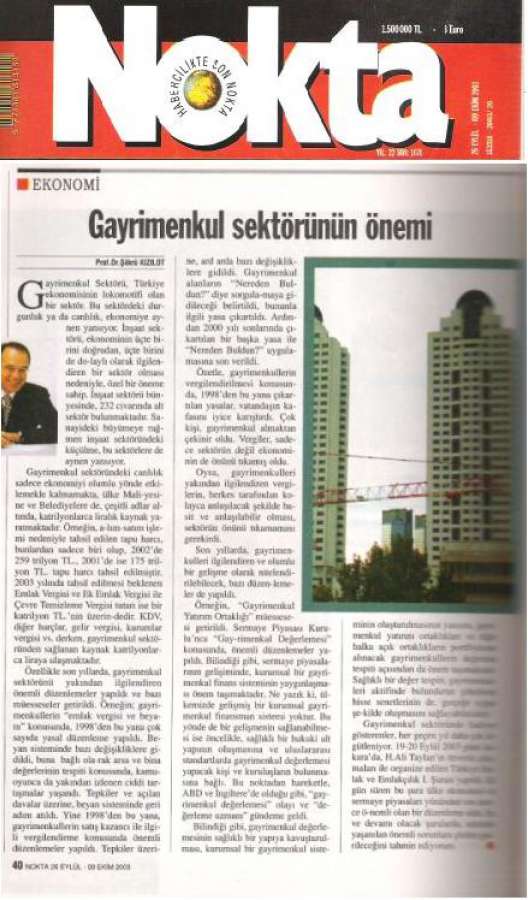 TEMFED TÜM EMLAK MÜŞAVİRLERİ FEDERASYONU 9 EKİM 2003-NOKTA DERGİSİ